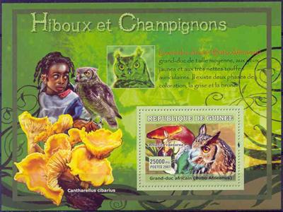 Z 00312 vogels uilen paddestoelen blok
