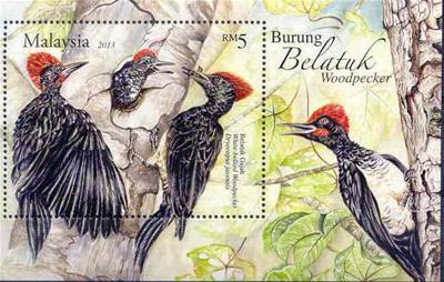 M 11079 vogels specht tegen boom blok 166
