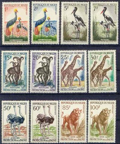 Z 17639 dieren vogels giraffe leeuw struisvogel 1-12