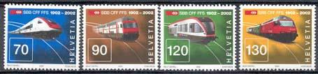 W 582 treinen, kaart 150 jaar spoorwegen in Zwitserland 1601-04