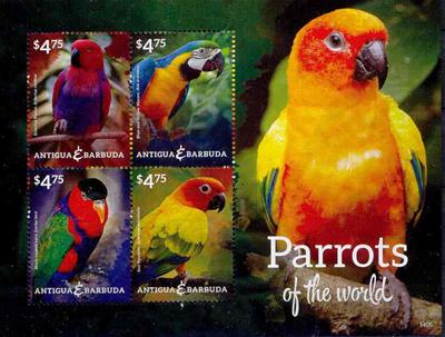 Z 08705 vogels papegaaien 4 wrd in vel