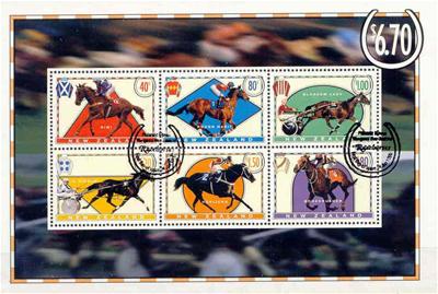 A 6964 paardensport 1475-80 blokken uit prestige boekje gestempeld