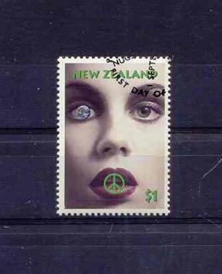 A 6619 gezicht met peace teken 1451 gestempeld